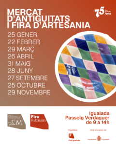 Data22 febr. 2026 Horari 9:00 am - 2:00 pmMercat d’anguitats i Fira d’Artesania d’IgualadaComparteix+ Afegir al calendari de Google+ iCal / Outlook export 00dies 00Hores 00Minuts 00segons