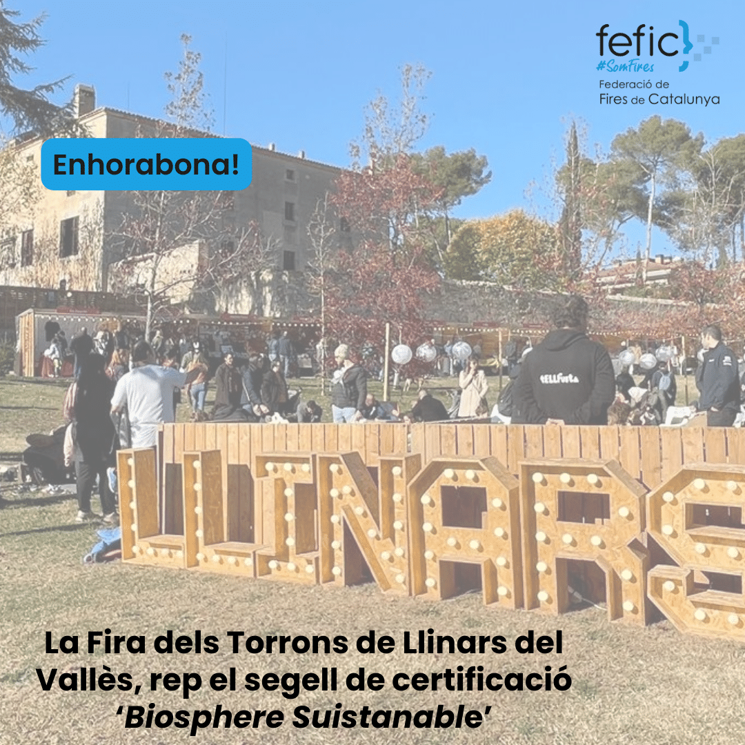 Aquest mes de febrer, la Fira dels Torrons de Llinars del Vallès ha estat reconeguda en matèria de sostenibilitat amb la certificació ‘Biosphere Suistanable’ que atorga l’organització Barcelona Biosphere i on es reconeix al certamen per la promoció de pràctiques sostenibles en el turisme i el en desenvolupament sostenible de la destinació.